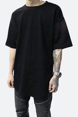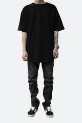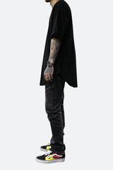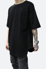 The Scoop T features a scalloped hem line, drop shoulder design and is constructed in a washed cotton fabric.
