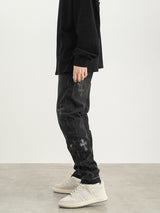The 01 Cross Denim is constructed in a relaxed fit through the thigh that slightly tapers from the knee to the ankle. Featuring a button fly closure at the waist, a warm wash, and poly-leather cross graphics throughout.