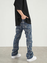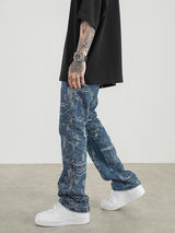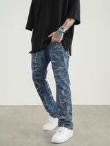 The 03 Marble Denim is constructed in a relaxed fit throughout. Featuring a button fly closure at the waist, and a warm wash throughout.