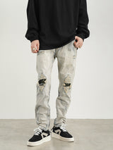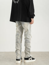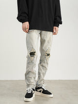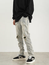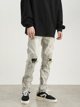 The 03z Patch Denim is constructed in a relaxed fit throughout. Featuring a button fly closure at the waist, cotton patching at the knee, distressed details throughout, a light wash, and a zipper on the inseam for an adjustable fit.