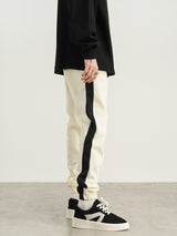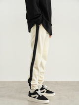 The Lounge Stripe Joggers v1 is constructed in a relaxed fit through the thigh that tapers from the knee to the ankle. Featuring contrast paneling at the outseam and inseam, and an elasticized waist.