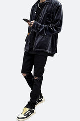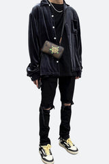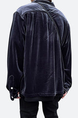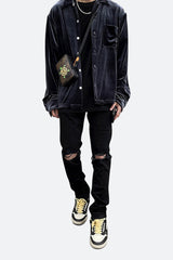 The Velour Button Down is constructed in a relaxed fit, featuring a button closure placket, and a single pocket on the chest.