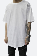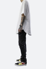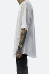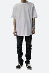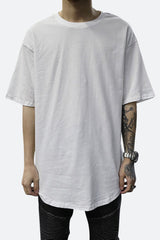 The Scoop T features a scalloped hem line, drop shoulder design and is constructed in a washed cotton fabric.