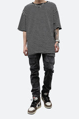 The striped t is constructed in a relaxed fit throughout, features a drop shoulder design and is constructed in a jacquard striped material.