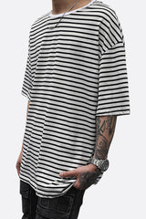 The striped t is constructed in a relaxed fit throughout, features a drop shoulder design and is constructed in a jacquard striped material.