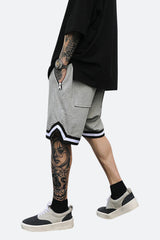The Warmup Basketball Shorts are constructed in a relaxed fit. The short features striped ribbing at the hem, zipper pockets on the front, and a cotton drawstring.