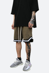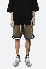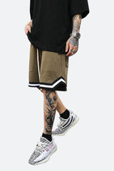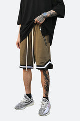 The Warmup Basketball Shorts are constructed in a relaxed fit. The short features striped ribbing at the hem, zipper pockets on the front, and a cotton drawstring.